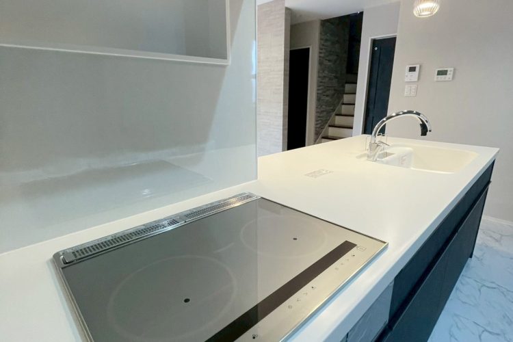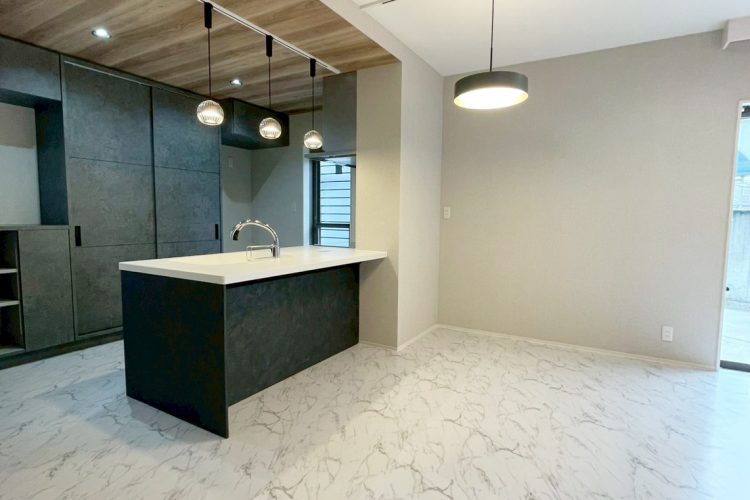 無機質になりがちなモダンな面材や床は、