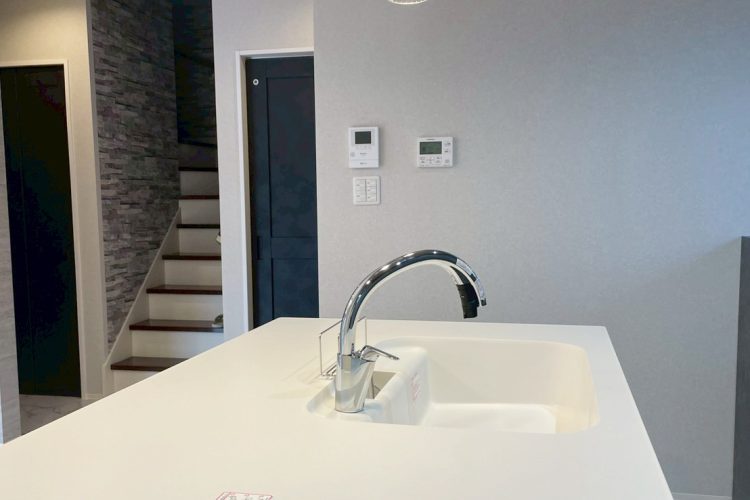 壁仕上げのクロスは基本のホワイトはその質感にこだわり、マットで強すぎない石目調としました。そこに空間ごとにグレイッシュな階調で変化を持たせて、様々なクロスを使用。ただし一軒の家としては全体の統一感もあり、まとまった雰囲気となっています。